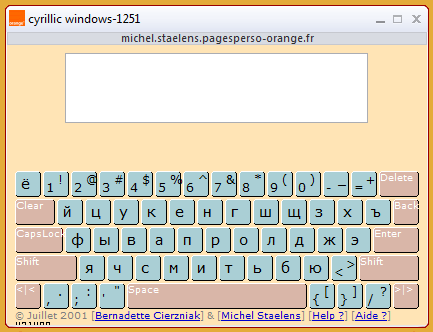 Le clavier visuel de Windows peut également vous dépanner, puisqu'il passe en cyrillique lorsque la barre de langue "RU" est installée et activée. Pour l'appeler: "Démarrer" / "Tous les programmes" / "Accessoires" / "Options d'ergonomie" / "CLavier visuel". Voici à quoi il ressemble sous Windows Seven: ![]() Enfin, si vous n'êtes